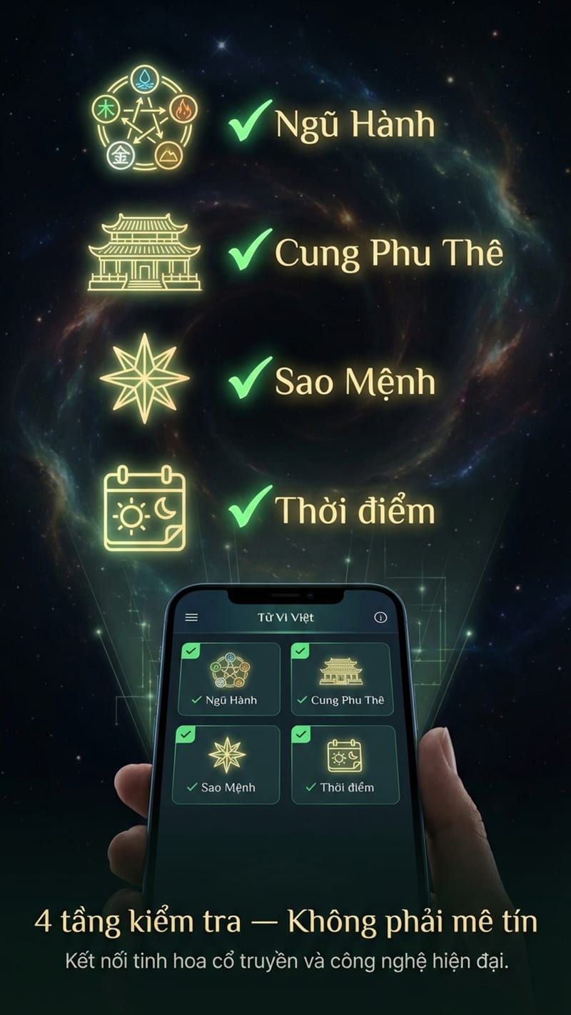 Nên khi ông bà nói lấy vợ xem tuổi — họ không nói xem con giáp cho vui. Họ nói xem toàn bộ: Ngũ Hành hợp không, sao cung Phu Thê bổ sung nhau không, và cưới năm nào là tốt nhất.