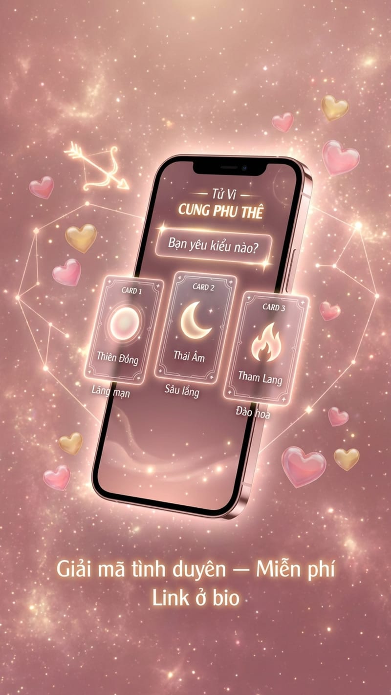 Tử Vi giải mã chuyện tình cảm qua cung Phu Thê — cung vợ chồng, nhưng thực chất là cung tình duyên. Cung này quyết định bạn yêu ai, yêu kiểu gì, và kết quả ra sao.